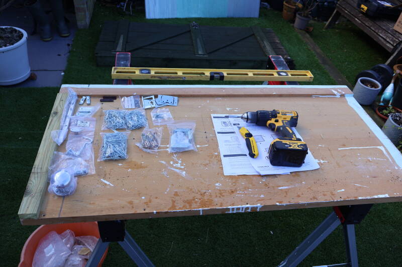 The kit came with a great number of parts, some prefabricated panels but also single pieces of timber for framing, building and securing, not to mention the array of different screws, nails and fittings